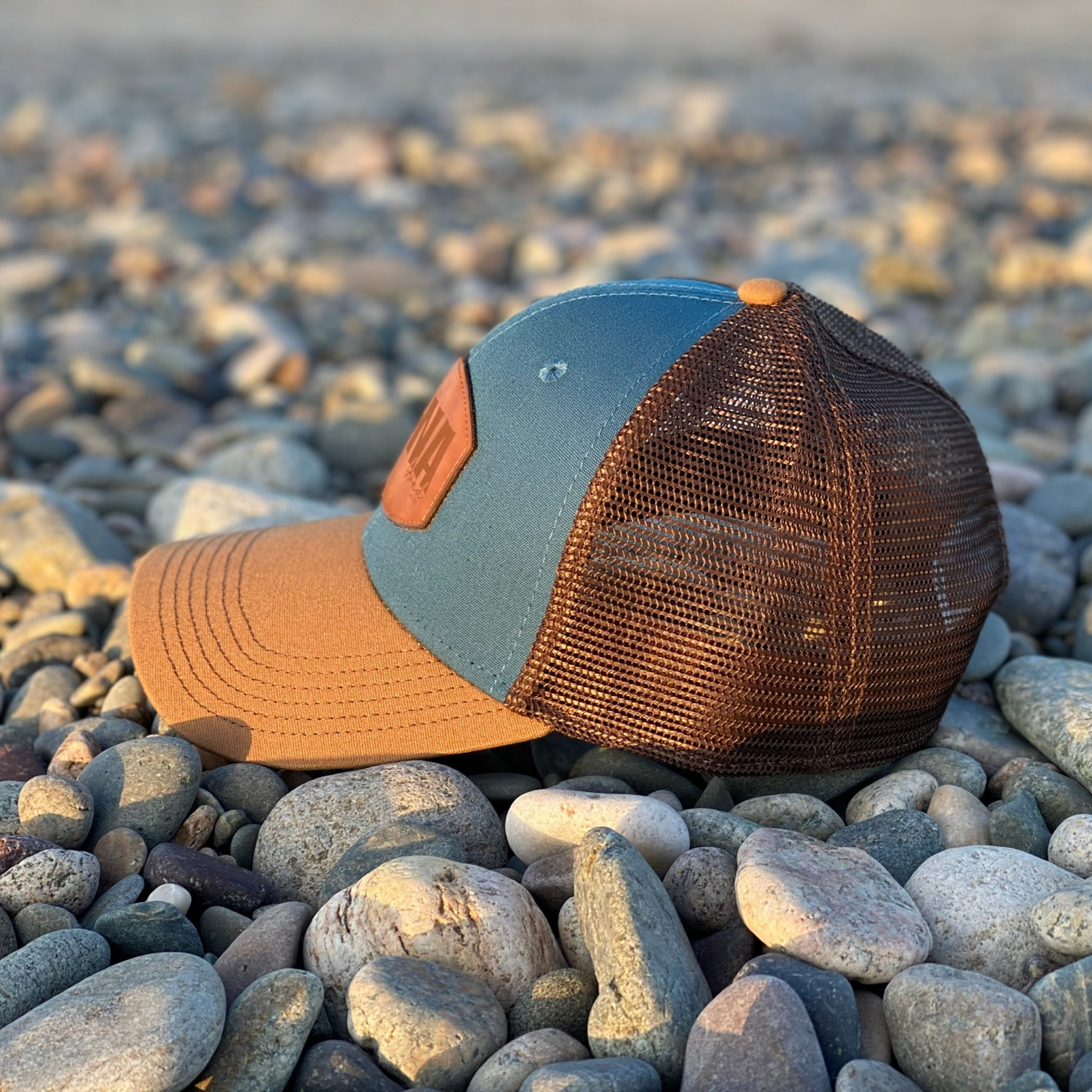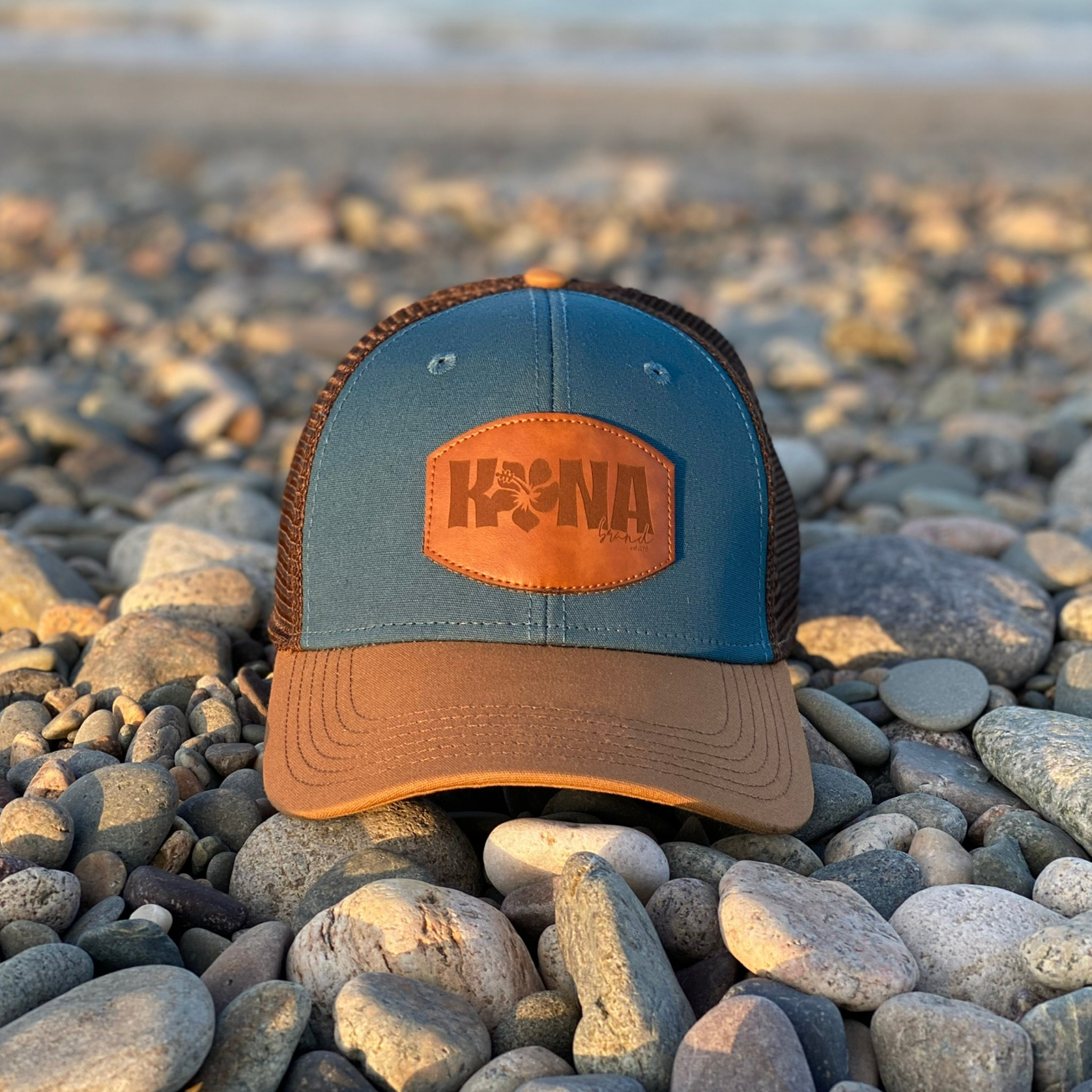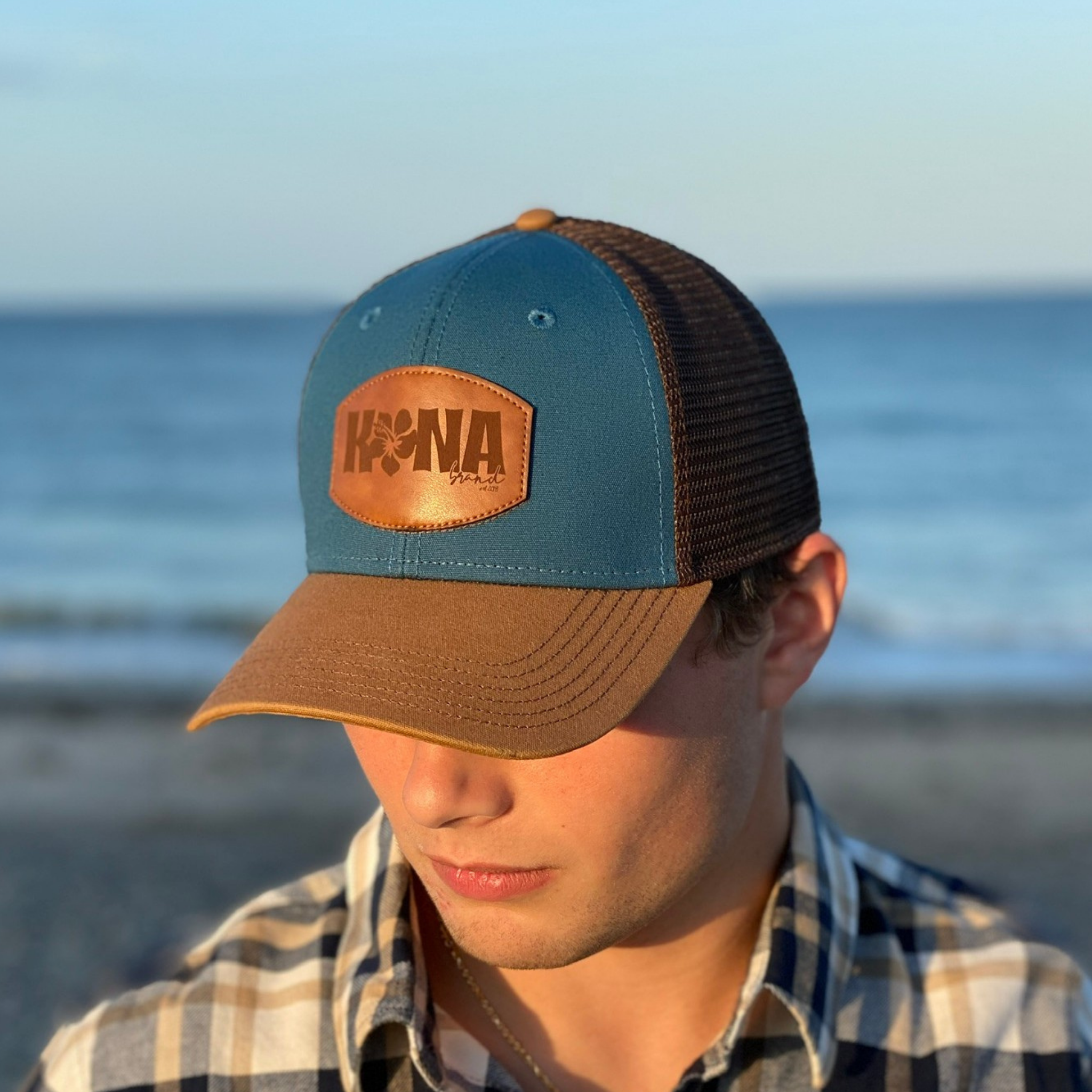 7 reviewsTropic Water Blue Leather Patch Trucker