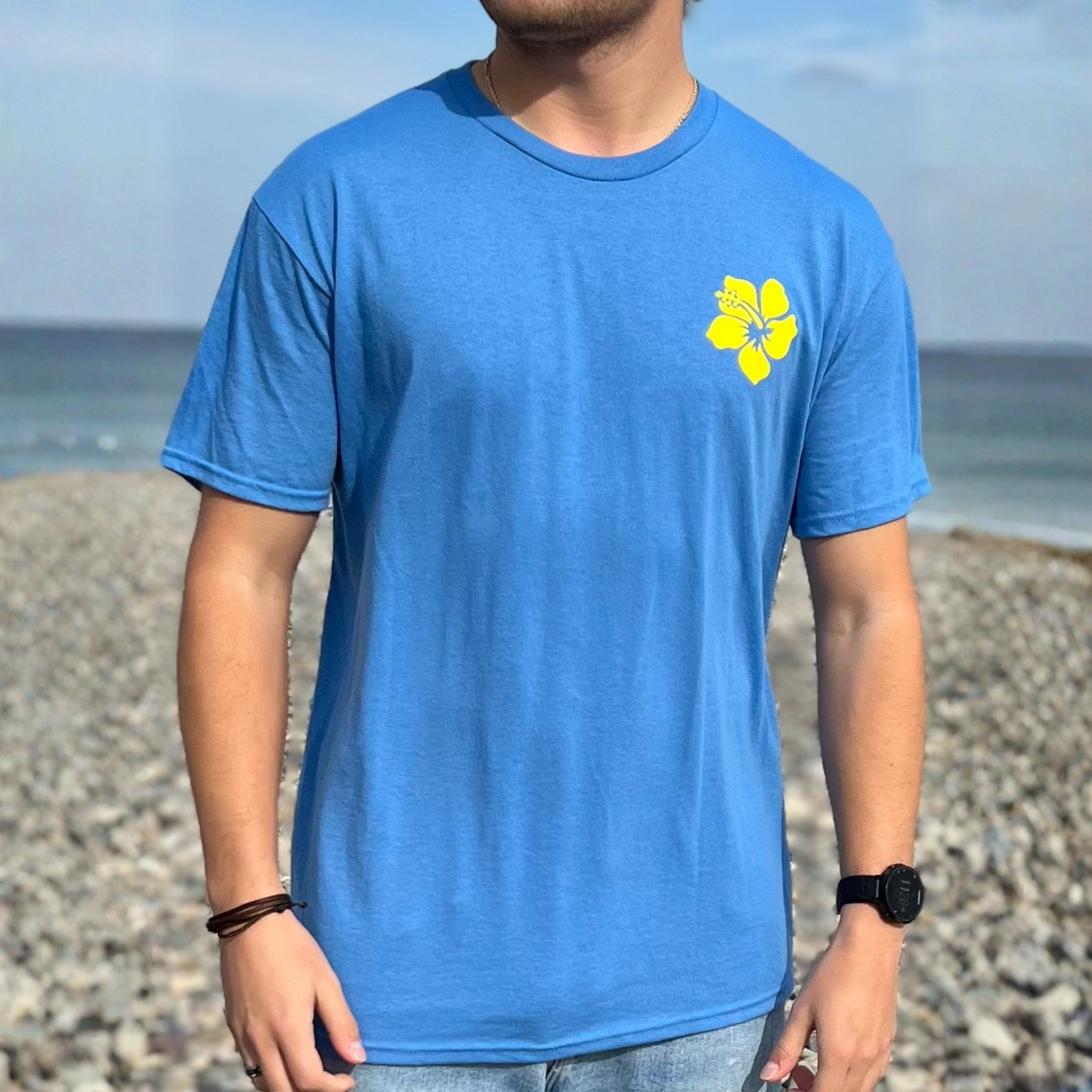 The Rad Dude Surfer Tee design was created by my younger brother, Lucas. This tee is 50/50 brushed cotton/polyester blend and fits true to size. With every Kona Brand purchase, 10% of the profits from each purchase goes to finding a home for every dog!