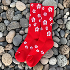 The newest addition to the Kona Brand family is the signature Hibiscus flower socks. Much like their matching Nantucket Red Flannel partner they bring a fun summer vibe to your wardrobe and a smile to your face. They are 75% Cotton, 23% Polyamide, and 2% Elastane to provide the softest most comfortable fit. Not too loose that they fall down your leg, and not too tight that you can feel your feet going numb. The perfect fit *chef’s kiss*